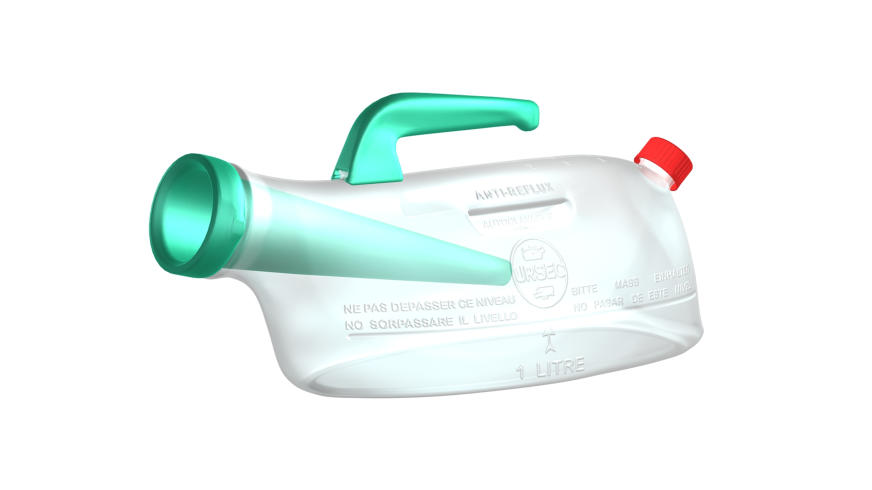 •No cap or lid needed: URSEC is always ready to be used.•Spillproof capacity: up to 1 litre (33 oz), usually sufficient for one night.•Visible level: it is easy to check if URSEC needs to be emptied and cleaned.•Usable one-handed: no need to call for assistance to open/close the lid like on other urinals.•Glow-in-the-dark reversible handle: no need to switch on the light at night to find the urinal.•Sterilizable at 130°C / 266°F or disinfect with cold water and bleach.•Nearly odorfree and noiseless to use.•Screw-on antireflux: no risk to unplug the anti-reflux and spill the content.•Easy to handle with the reversable handle and the notches.•MTQuick system allows for an hygienic emptying without splashing.•Easy to clean (bedpan washer compatible). Ergonomic design. Soft to the touch plastic.•2 MTQuick caps supplied (regular and safety).•Ideal for bed-ridden patients, handicapped persons, when traveling by car, etc ...•Improve daily life and independance.