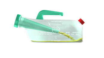 •URSEC urinals are not supplied sterile. Please disinfect and clean before use.•They must be used only with their anti-reflux on.•URSEC urinals must be emptied before the level of liquid reaches the 1 litre mark (33 oz).•URSEC urinals can be used placed on the bed or hold with a slight slope that allows the urine to flow down inside the urinal. If the slope is not sufficient or negative, the urine might backflow toward the patient.